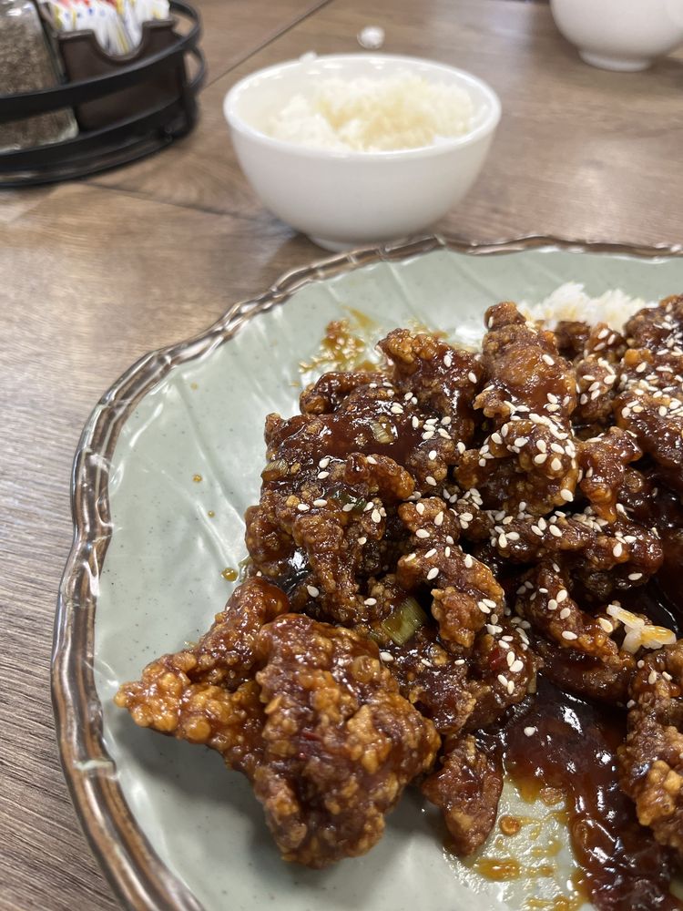 Crispy Breaded white meat chicken in spicy orange peel sauce with sesame